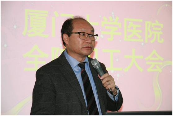 2019年1月28日下午,厦门大学医院在门诊五楼会议室召开2018年度职工大会,医院工会主席杨晓建同志主持会议。