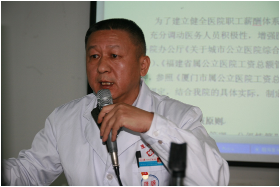 图五、郭玉宝同志做《厦门大学医院绩效考核暂行办法》报告