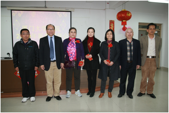 爆竹传吉语,腊梅报新春。2019年1月30日下午,厦门大学医院在门诊五楼会议室,隆重举行2019年春节团拜会。张国君院长首先祝各位离退休老同志,身体健康,阖家幸福!他说“大家不要误会,这个‘老’字不是指年龄,而是代表各位同志德高望重,为医院做了一辈子的贡献”。风趣幽默、诚挚温馨的开场白,亲切、暖情,顿时走近了同志们的心,烘托了团拜会的气氛。张院长接着向大家报告了2018年厦大医院工作情况以及2019年医院工作重点。他特别指出,2019年翔安医院即将开业,但是请大家放心,翔安医院不会减少对厦大医院的支持。看到成绩,看到不足,更看到了新春的阳光,全场职工认真聆听、笑语频传。