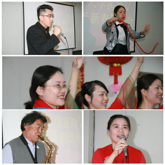 敞开心扉寄祝福,献艺舞台迎新春。医院工会主席杨晓建同志用二首闽南语歌曲,拉开了团拜会文艺演出的序幕。文艺演出精彩纷呈,有歌唱、舞蹈、乐器演奏、魔术等。其中,《映山红》、《魔术表演》二项,是在此前参加翔安医院联欢会上获得一、二等奖的节目,将现场气氛再次推向高潮,引来观众掌声雷动、喝彩连连。场上笑声不断,气氛越来越热烈,一位老同志仿佛一下子年轻了十岁,忍不住冲上舞台,邀请主持人一起即兴表演了一段国际标准交际舞。