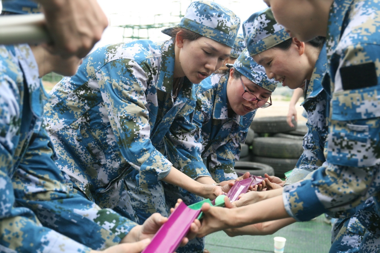 青年医务人员们脱下白大褂,穿上迷彩服,被随机分成四个团队,各自取了响亮的队名和口号,以分组对抗的形式体验了杯水传情、珠行万里、水上滑索、真人CS等项目。通过组建团队,建立团队文化,大家树立了争先创优的团队竞争意识,展示了配合默契、拼搏进取的精神。