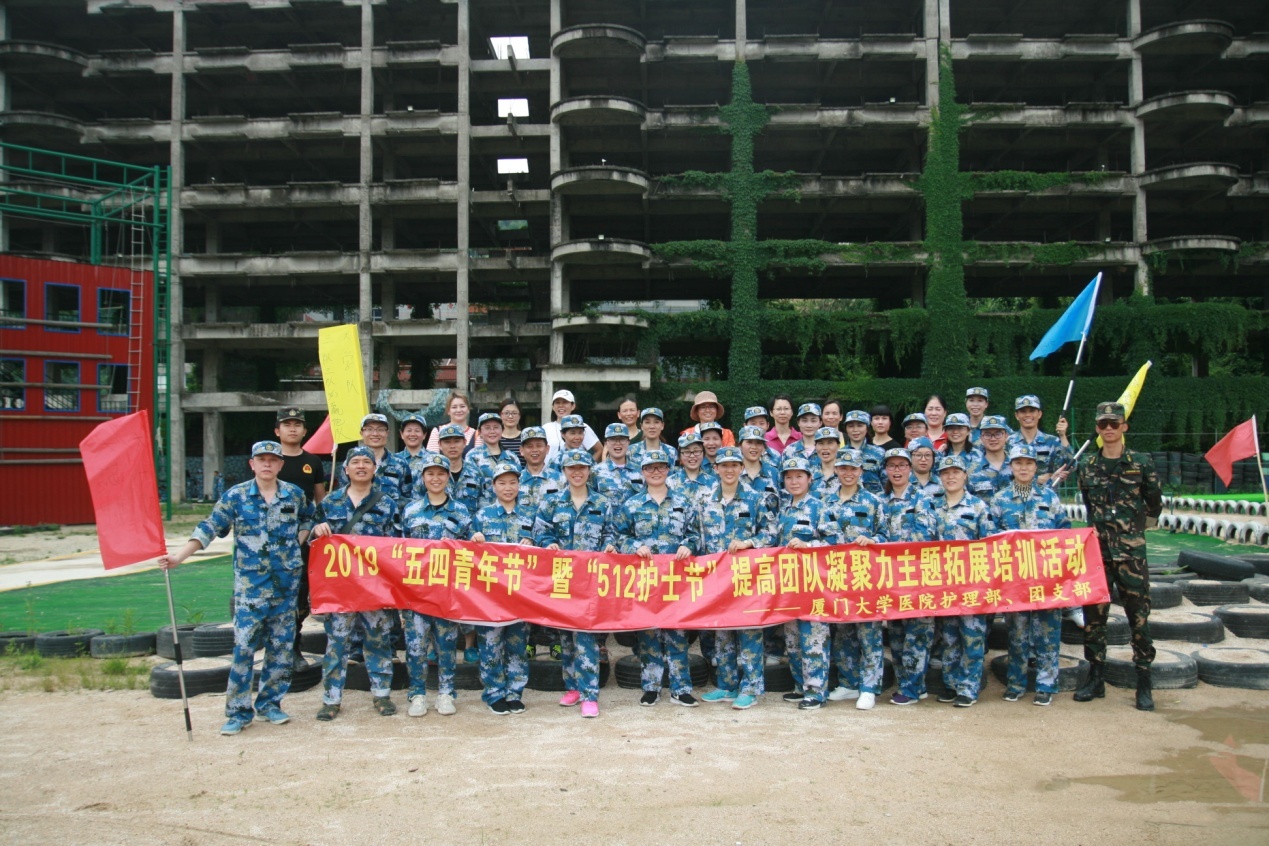 为纪念“五四”青年节和“5.12”国际护士节,传承南丁格尔精神,提高医院护士及青年团队的战斗力、凝聚力, 6月2日,厦门大学医院领导组织共青团委与护理部护士、青年40余人赴厦门龙行天下户外拓展运动基地开展丰富多彩的素质拓展培训活动。