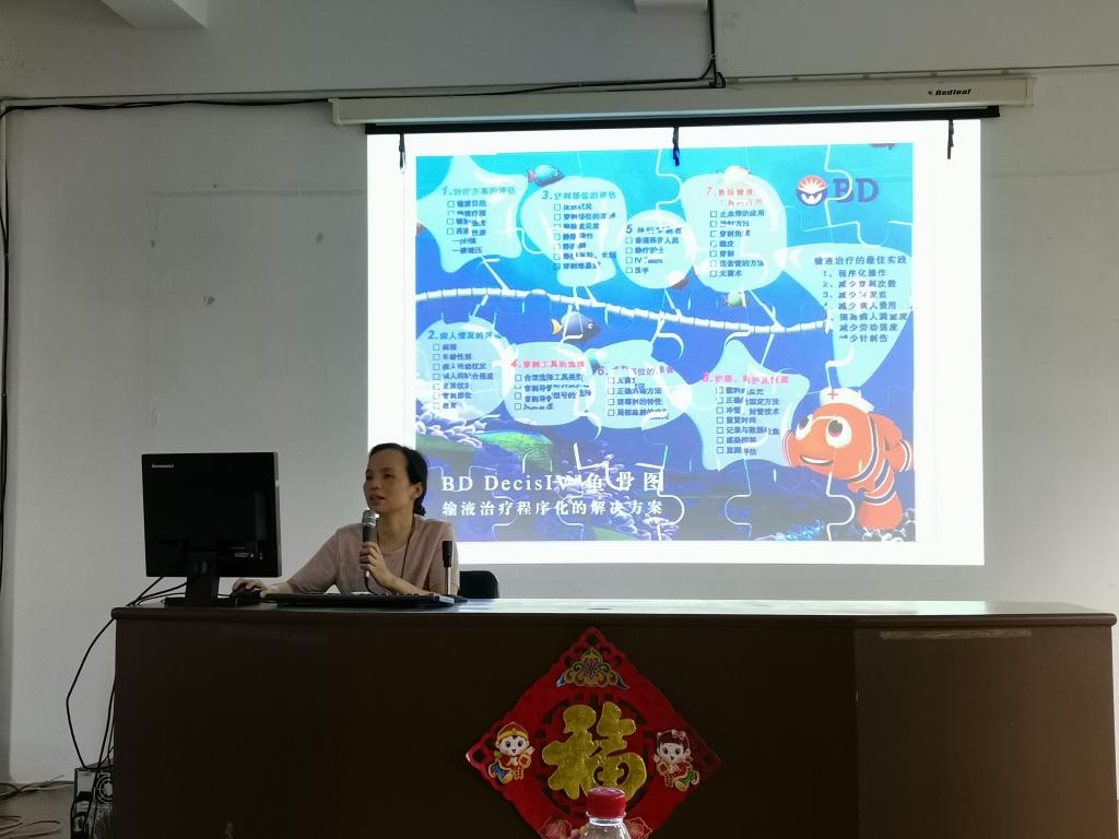 在培训会上,主管护师陈燕菲引导全体护理人员首先系统学习PICC维护及拔管知识。通过学习,创新了静脉治疗护理领域,规范了静脉治疗护理流程,保障了静脉治疗护理安全。