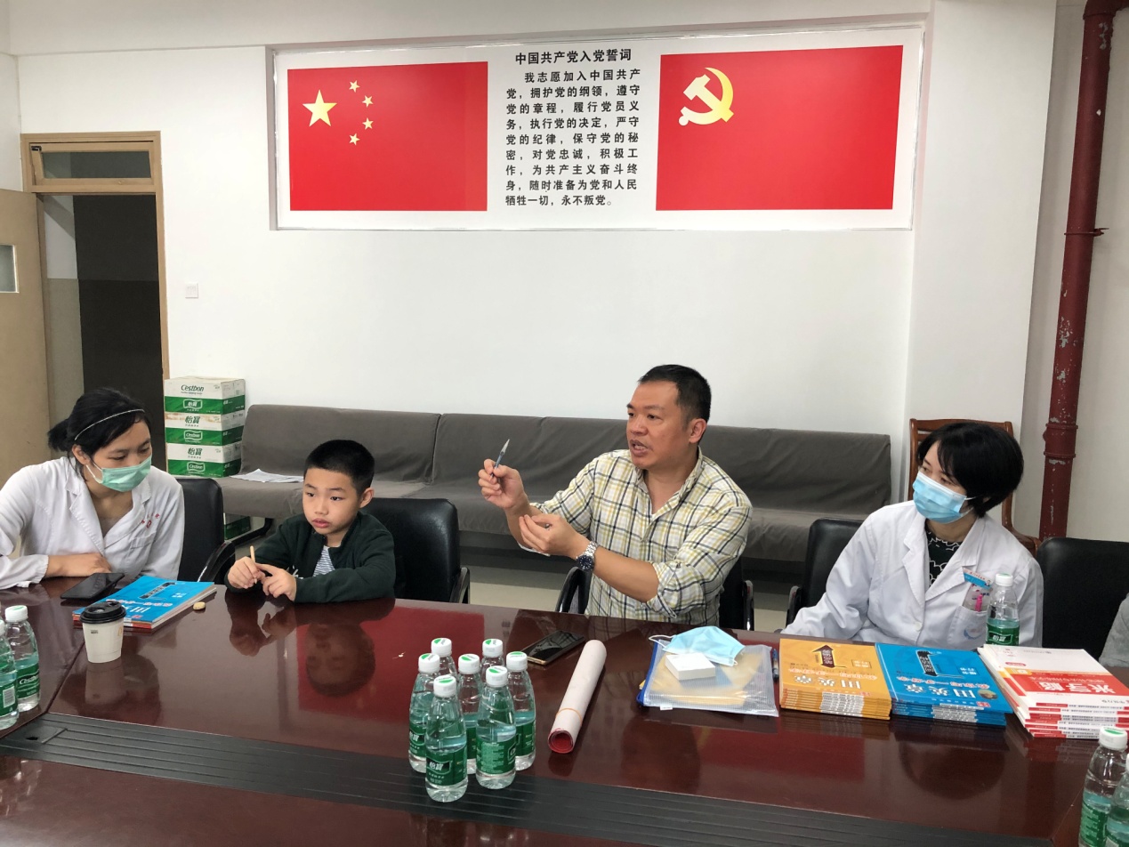 活动邀请门诊支部书记黄硕武同志与大家分享交流了辅导孩子习字的心得以及书法学习的一些体会。考虑到医务工作的特点,同事们要参加医疗值班、发热门诊与预检分诊工作,同时考虑到孩子们课业繁重,此次活动采用了大课与小课结合,线上与线下并举的灵活形式,并且建立了学习群,活动内容包括日常在学习群发布书法学习小字频;小课,针对孩子的日常具体写字,进行点评、用笔示范、结构分析等;大课,面向多数孩子,集中讲解一些书法学习共性的内容,如:执笔、写字姿势等。