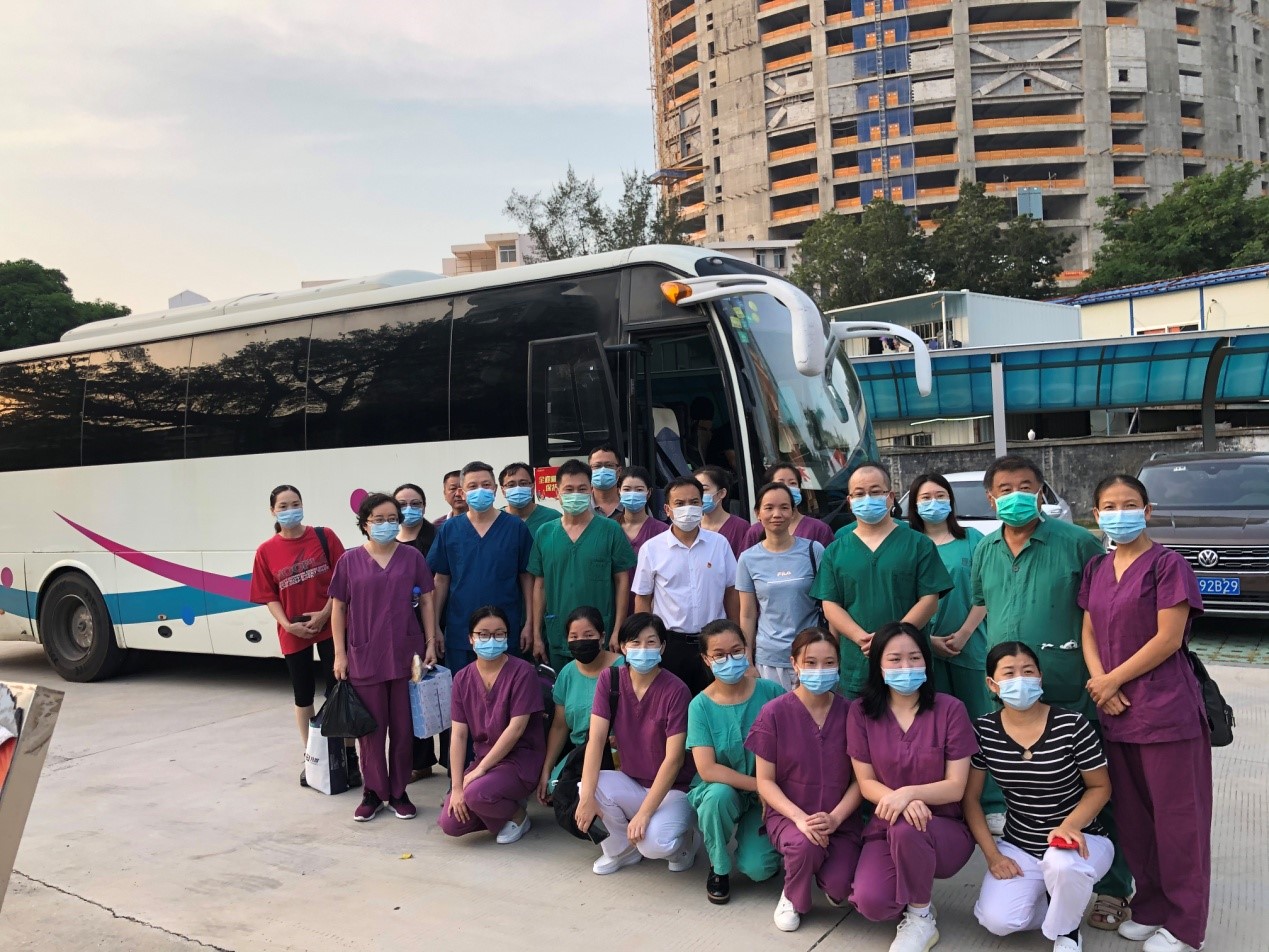 14日上午7点,厦门大学医院支援塔埔社区核酸采样点的医疗队队员在医院准时集中。张建安书记亲切会见了所有队员,感谢医务人员白衣执甲,以大无畏精神勇敢逆行,同时嘱咐同事们做好个人防护,平安归来。