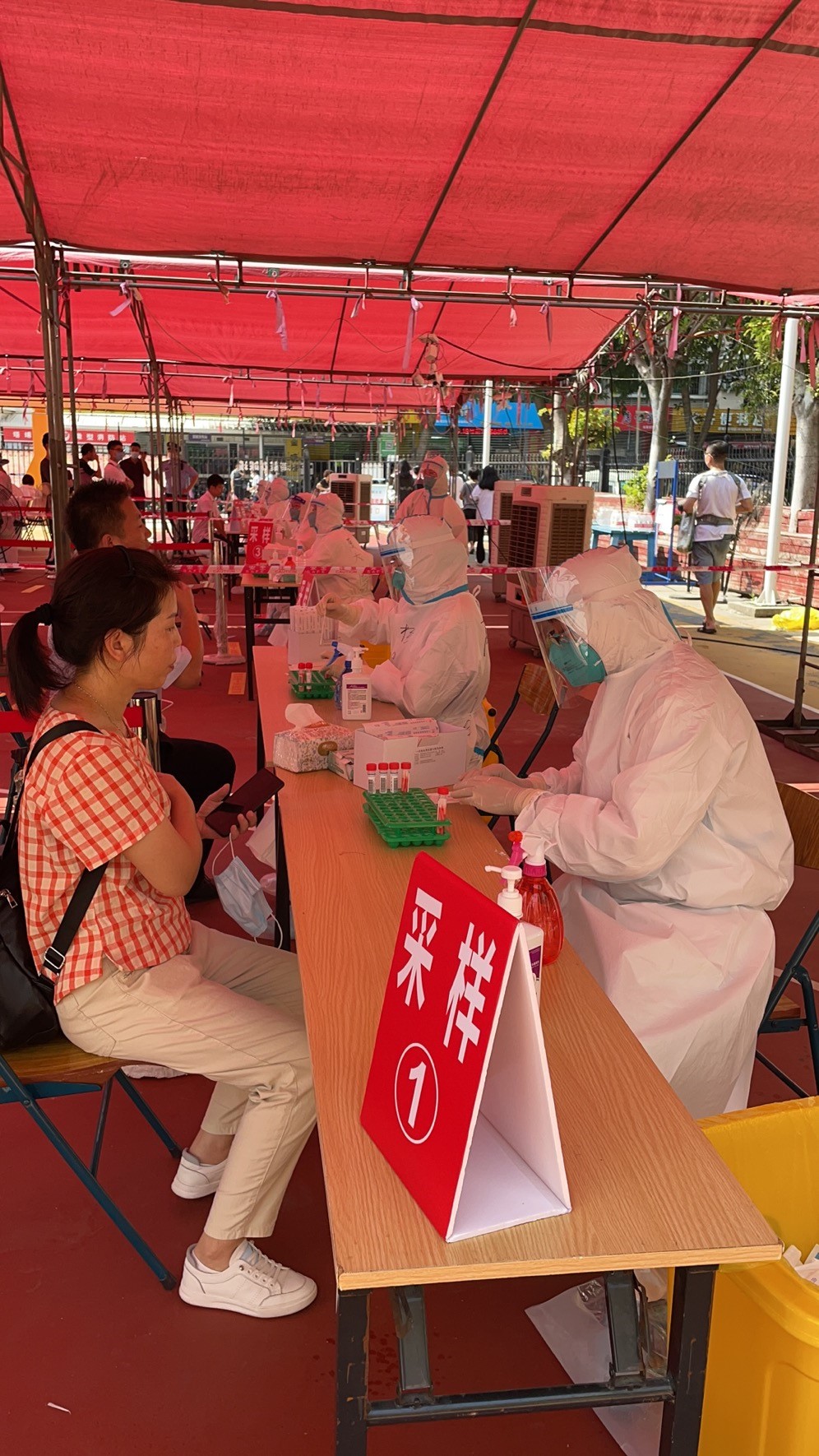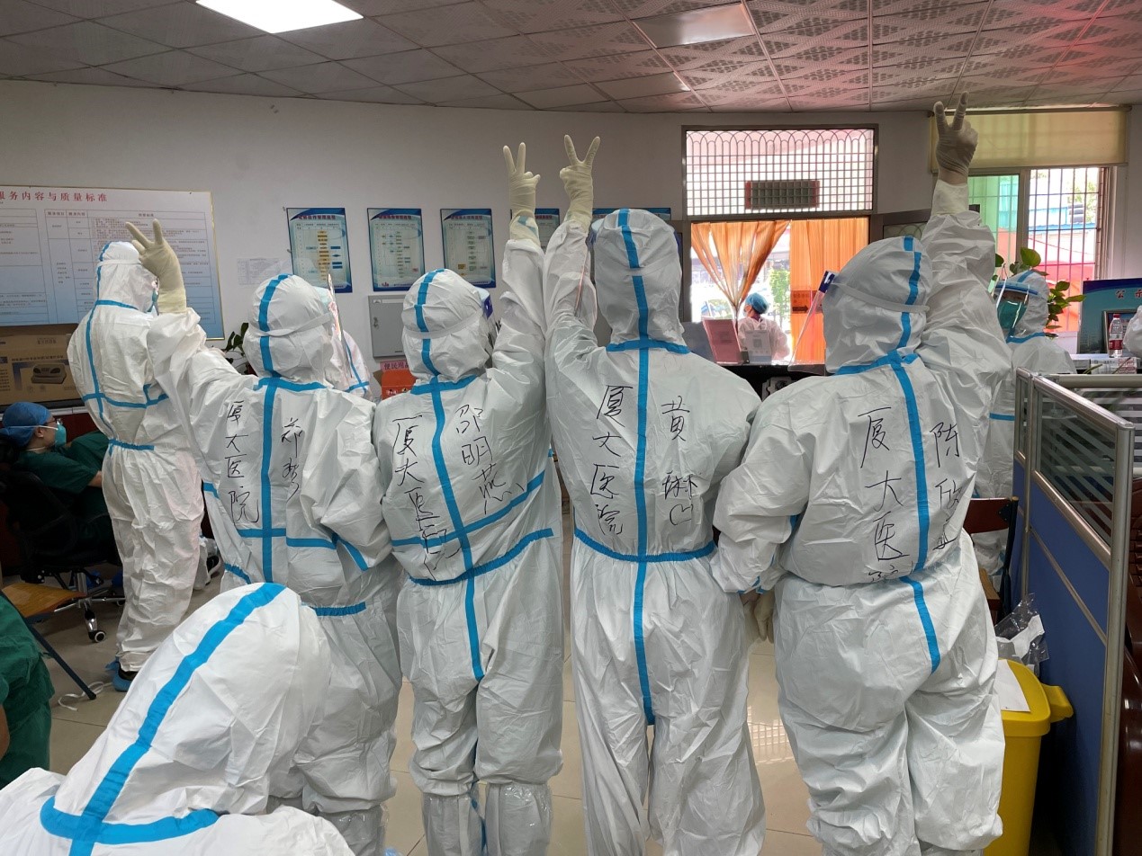 9月13日,厦门市发现12例新冠肺炎病例,疫情防控形势骤然严峻。根据厦门市应对新冠肺炎疫情工作指挥部发布通告,全市居民小区(村)实行闭环管理,全员进行核酸检测。晚上10点,厦门市卫健委紧急通知厦门大学医院,派26名医务人员于14日上午7点30分进驻塔埔社区支援核酸采样。时间紧迫,召集现场会议不可行,一个科室一个科室动员来不及,院办公室就在医院工作群发出紧急通知与报名接龙。没想到仅仅不到半个小时,就有30名同事踊跃报名参加(第二天又有约20名同事继续报名轮班),超过了上级领导分派的任务。这当中,有的同事,刚做完肠套结切除手术,出院不久,大病初愈;有的同事,母亲因车祸成为植物人,长期卧床不起;有的同事,年纪大了,被劝退但坚持上阵;有的同事,刚刚参加了迎新生工作、刚刚下了夜班;还有更多的同事,他们到不了核酸采样现场,但是在医院默默地支持着日常门急诊、住院诊疗护理以及预检分诊工作。在医务人员报名的同时,医院后勤部门连夜调配了防护服、N95口罩、面罩等防疫物资。翔安医院紧急增派了一辆大巴车。医院疫情防控专家组紧急组建了核酸采样相关知识培训与技术支持工作。